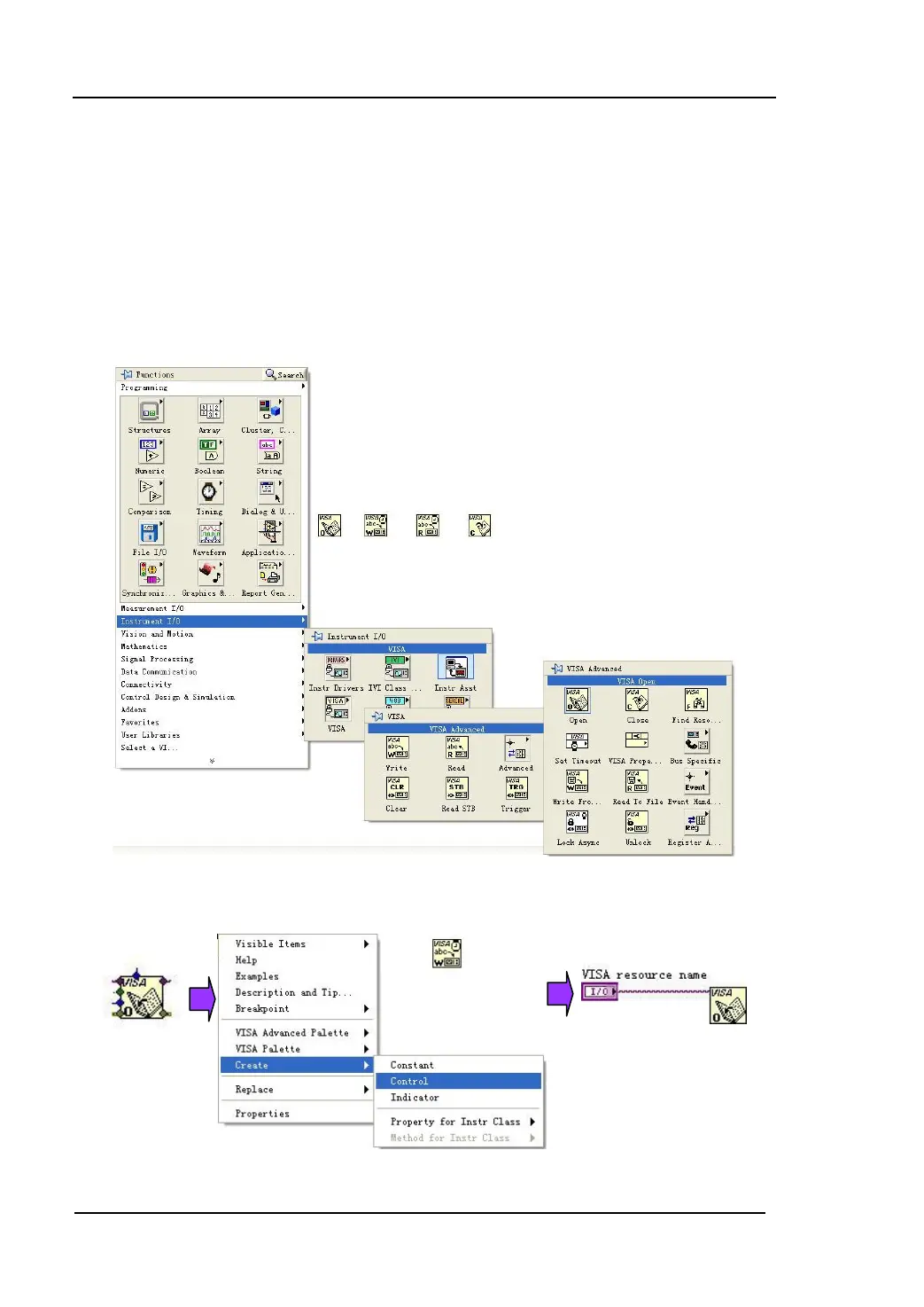 functions: “VISA Open”, “VISA Read”, “VISA Write” and “VISA Close”. See the