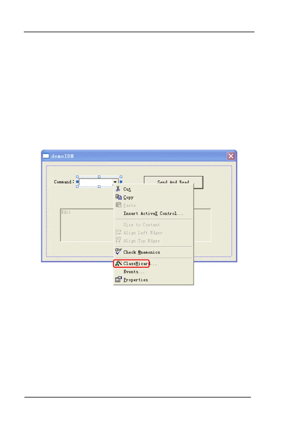 2) Choose Data in the property of Com box, input three commands manually: