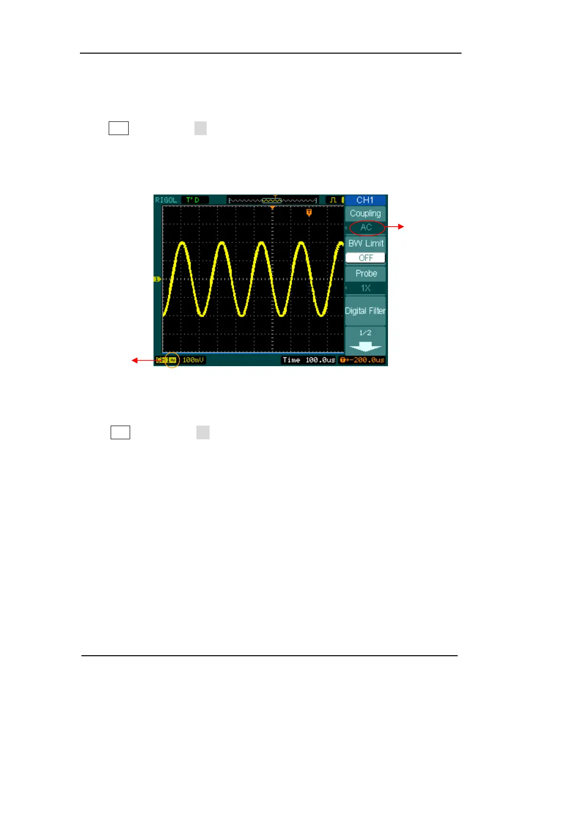 Press CH1→Coupling→DC, to set “DC” coupling. It will pass both AC and DC