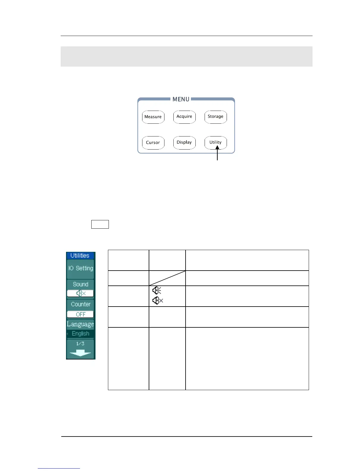 Press the Utility button to pop up the menu for the settings of the Utility system.