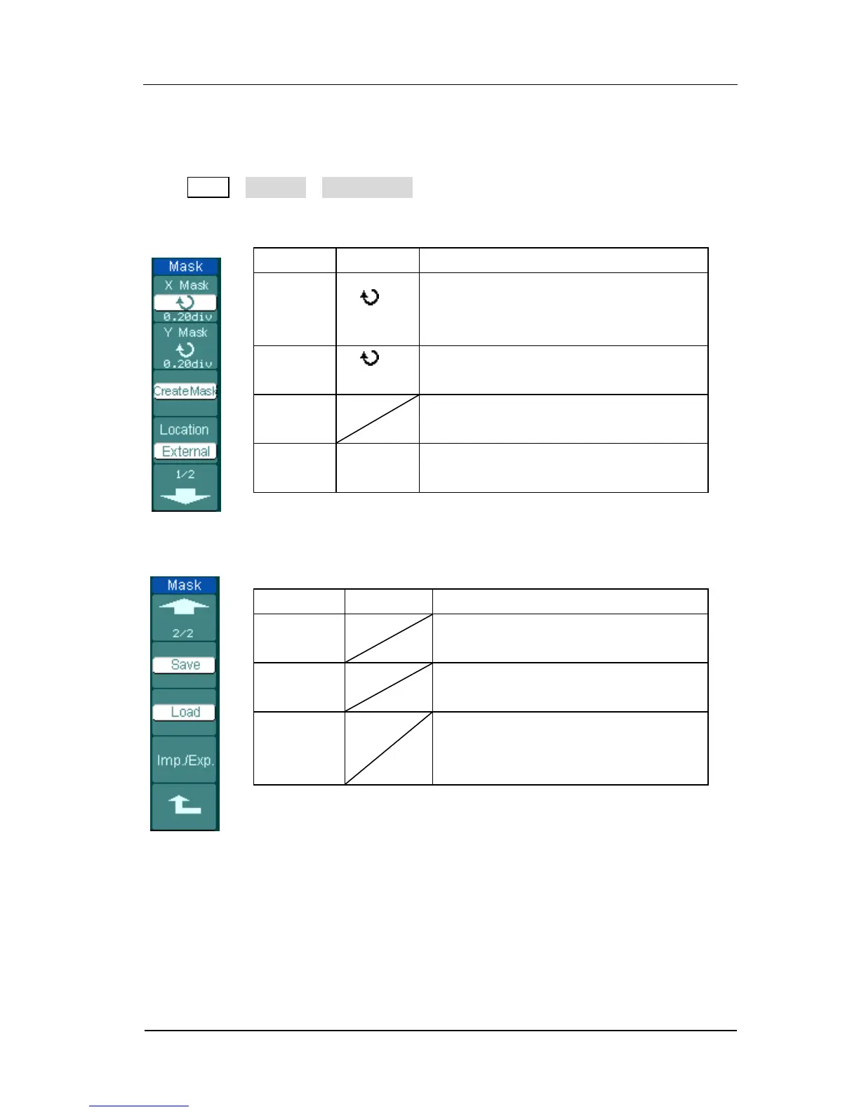 Figure 2- 95 Table 2- 60 The Mask setting menu (Page 1/2)
