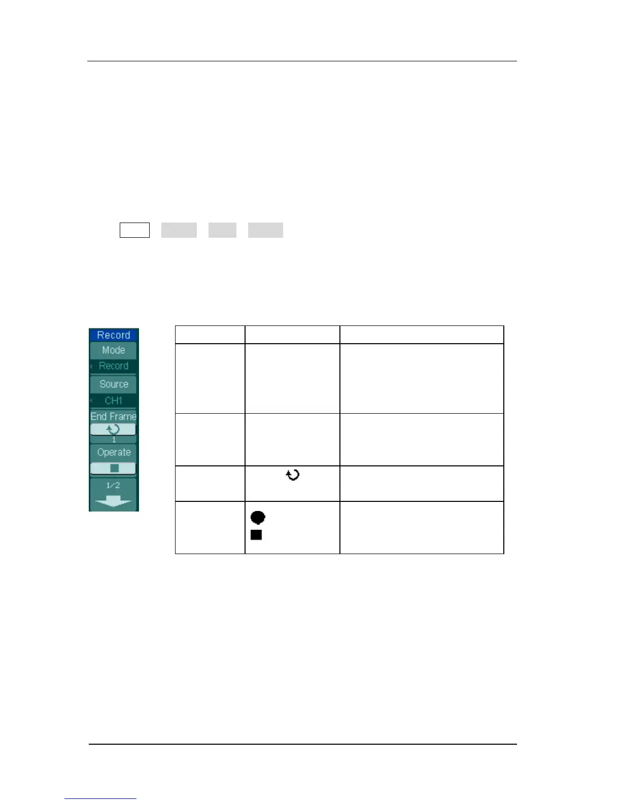 Figure 2- 101 Table 2- 65 The Record menu (Page 1/2)
