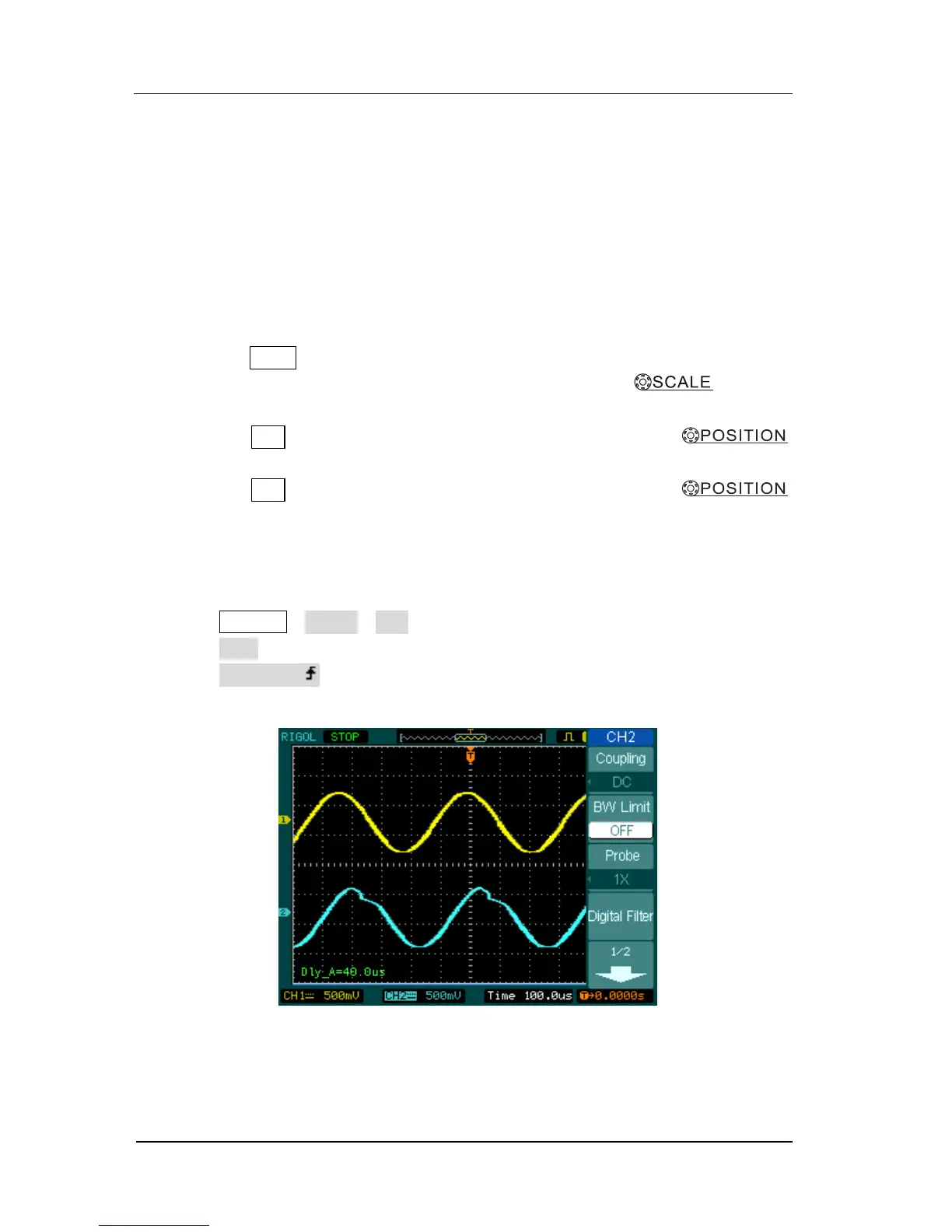 signal delay. First, set the probe and the channel attenuation to 10X and connect