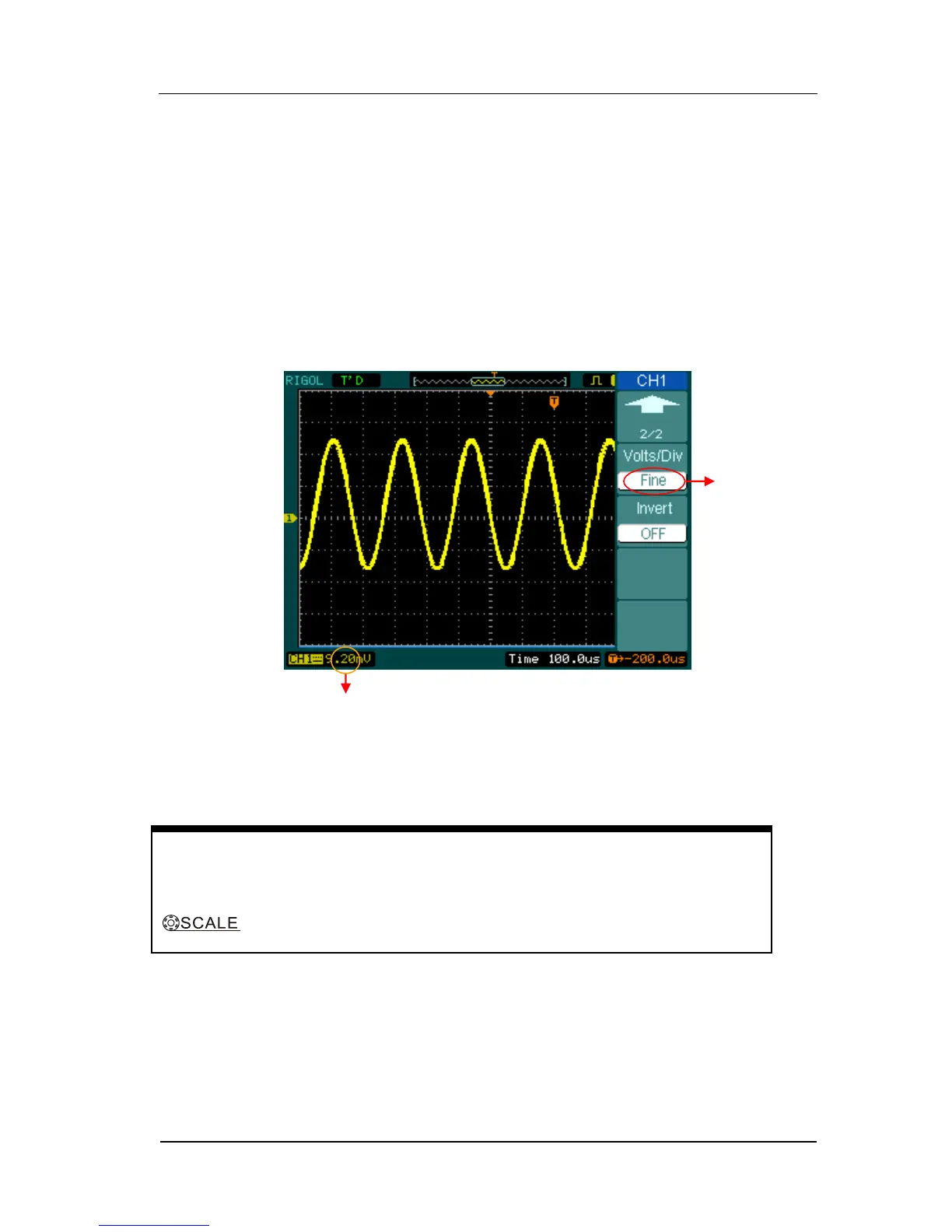 Coarse: It is the default setting of Volts/Div in a 1-2-5-step sequence from