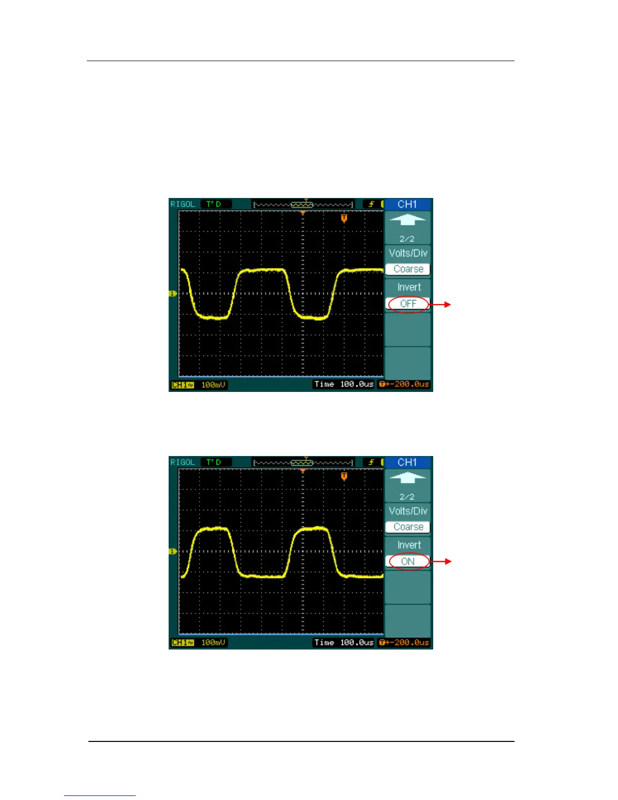 Invert turns the displayed waveform 180 degrees, as respect to the ground level.
