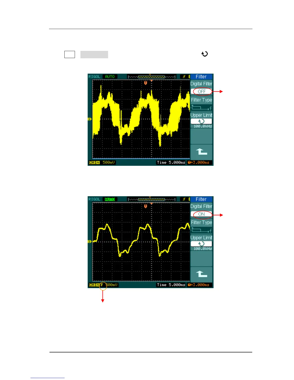 Press CH1Digital filter, display the digital filter menu. Turn ( ) knob to set high