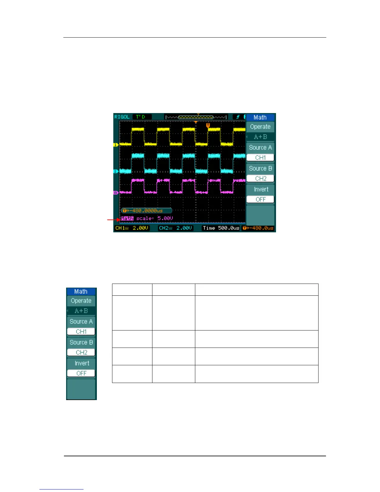 Channel 1 and Channel 2. The mathematic result can be measured by grid and