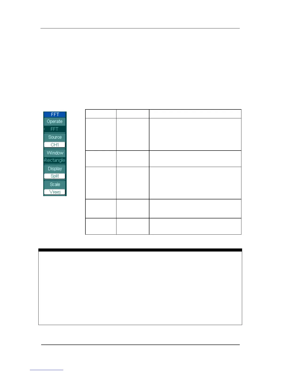 Figure 2- 17 Table 2- 6 The FFT menu