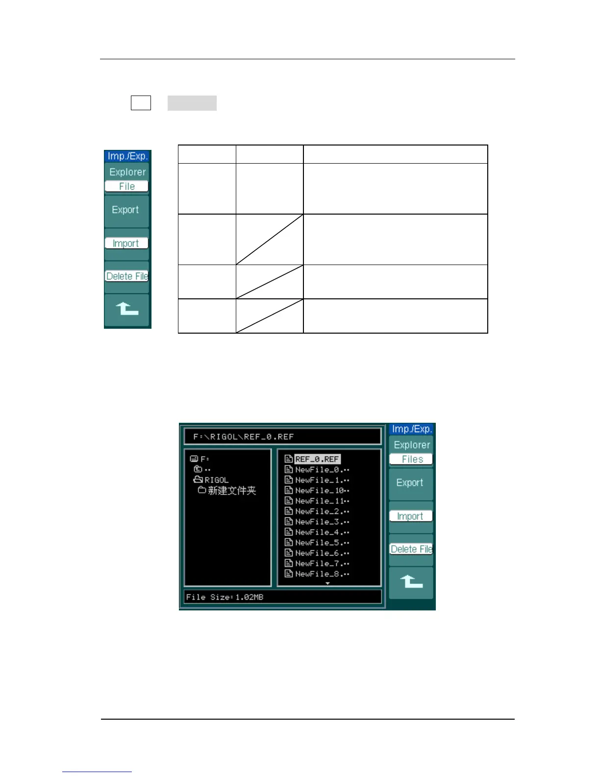 Figure 2- 20 Table 2- 10 The Imp./Exp. menu
