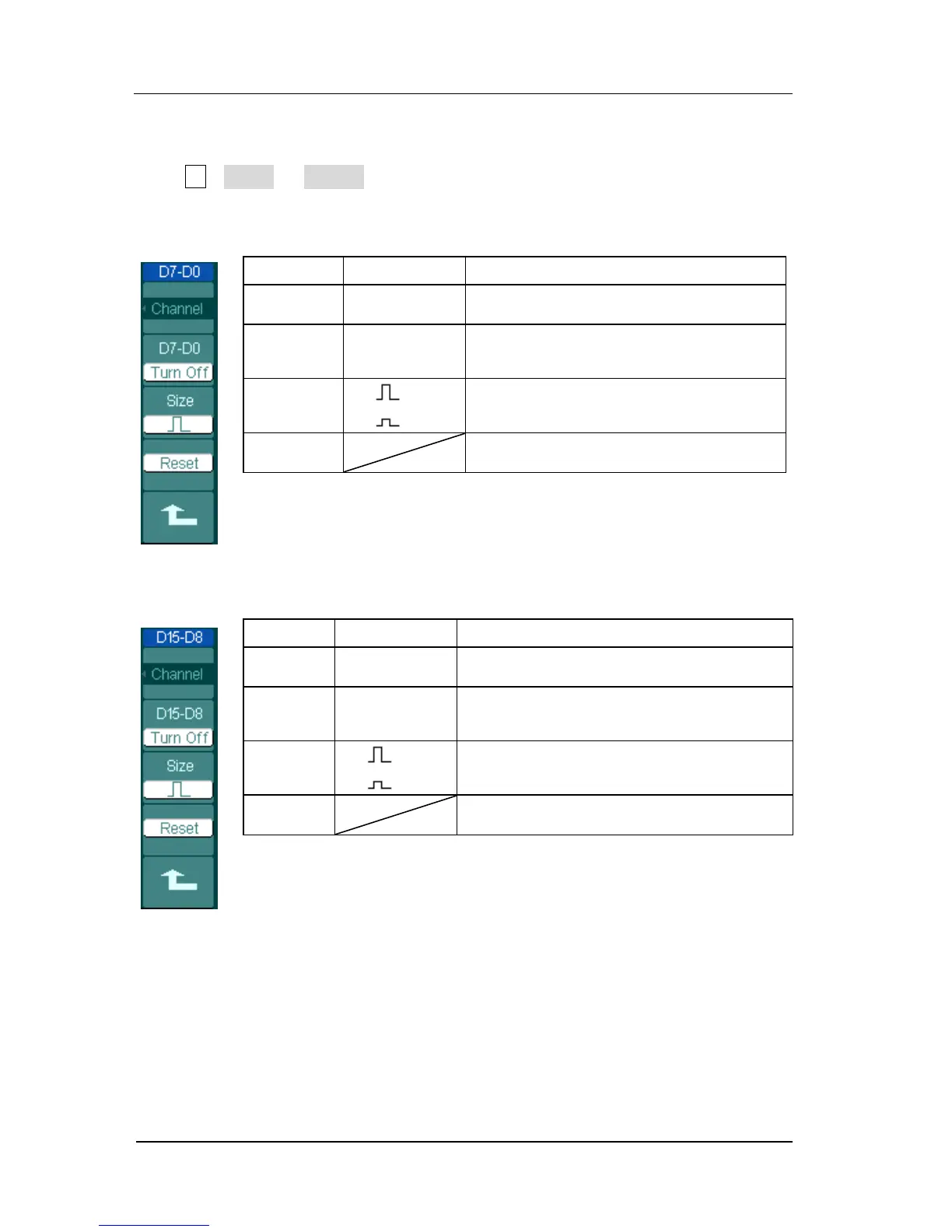 Reset waveform of channel D7-D0
