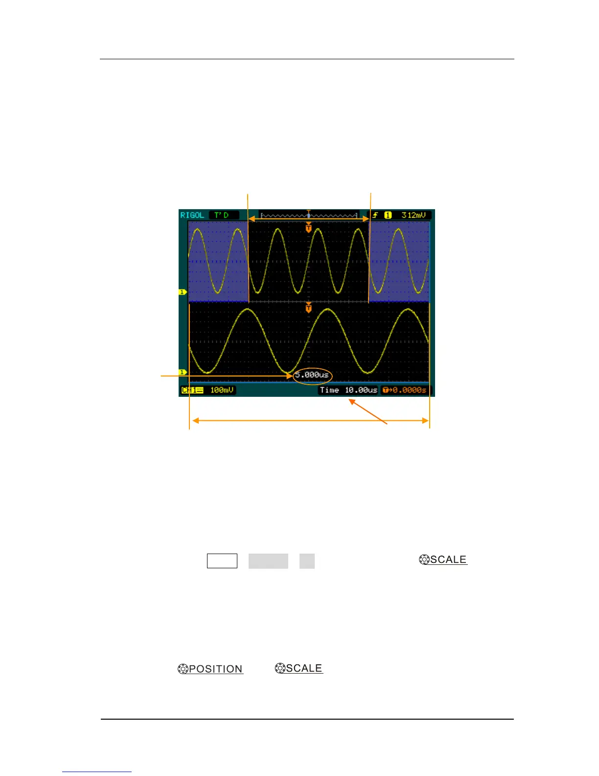 the Delayed Scan. The value at bottom of the screen is the main time base and the