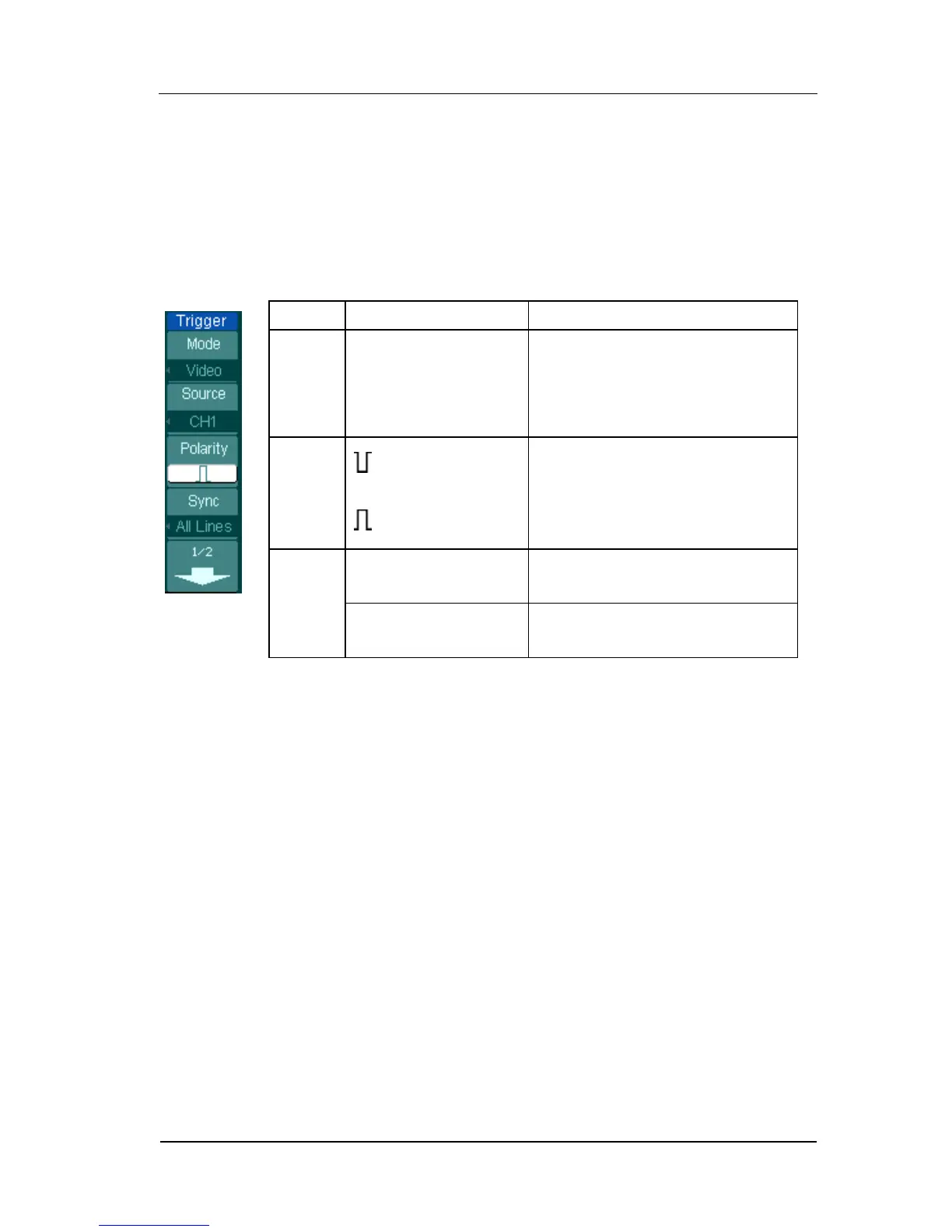 Figure 2- 45 Table 2- 23 The Video Trigger menu (Page 1/2)