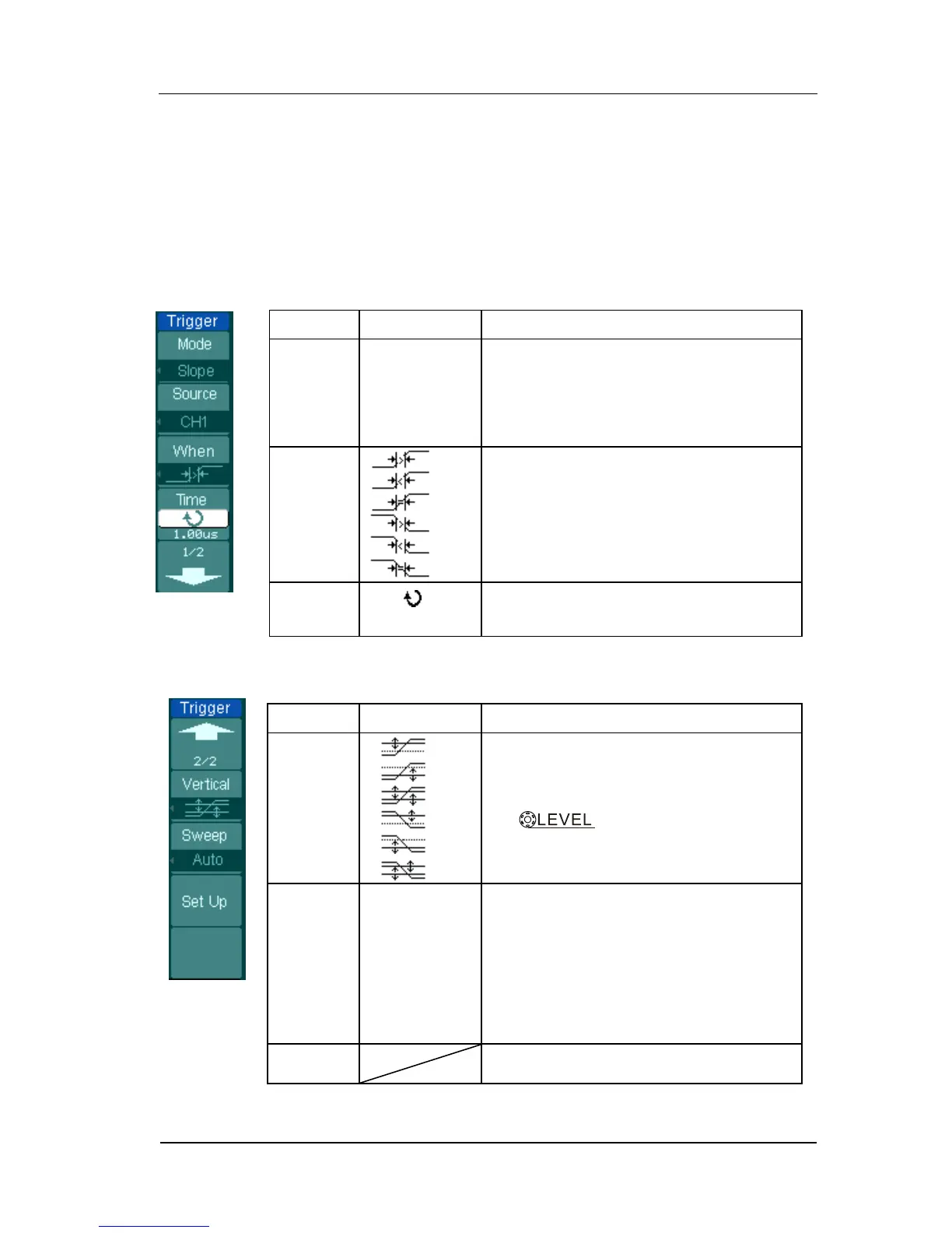 Figure 2- 50 Table 2- 26 The Slope Trigger menu (Page 1/2)