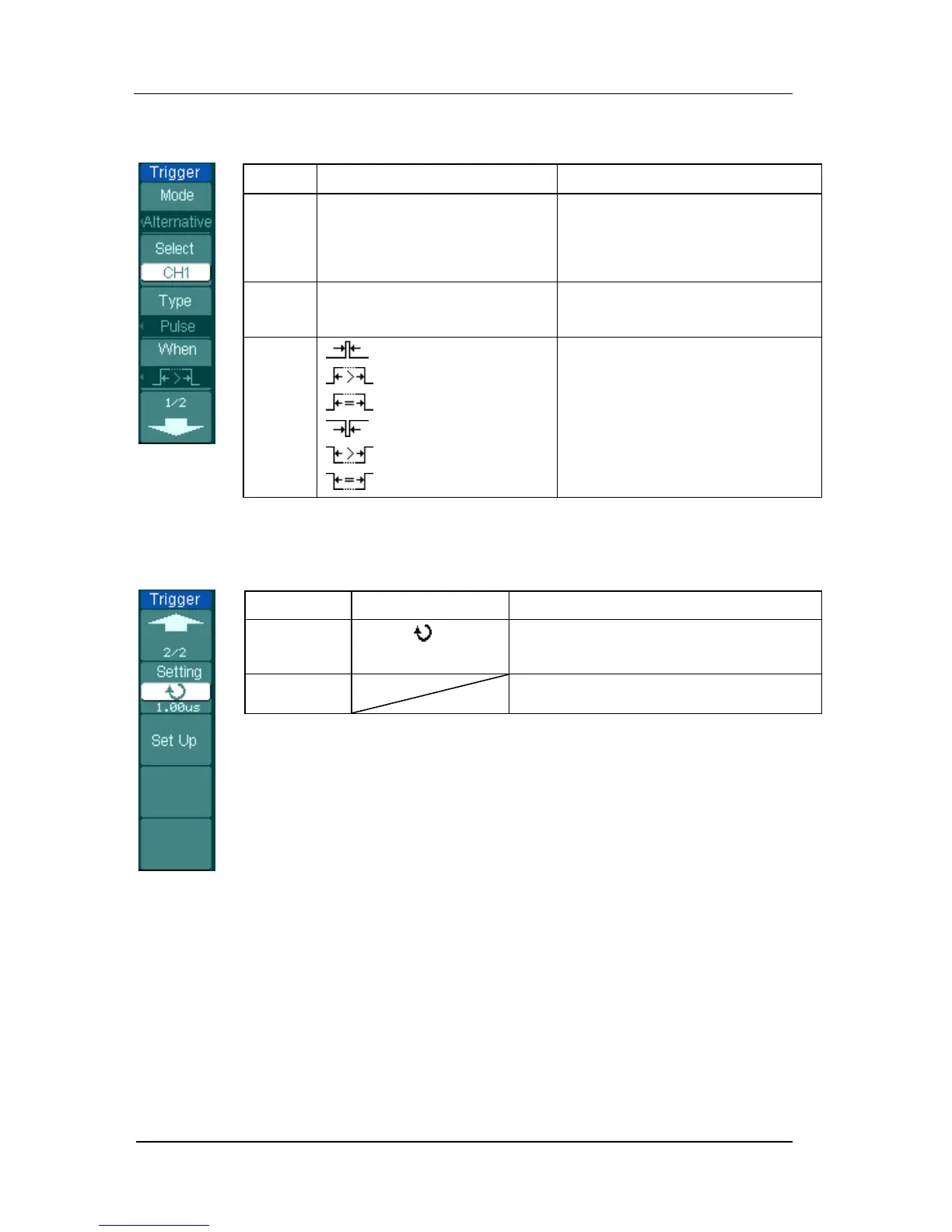 Figure 2- 54 Table 2- 30 The Alternative menu (Trigger Type: Pulse, Page 2/2)