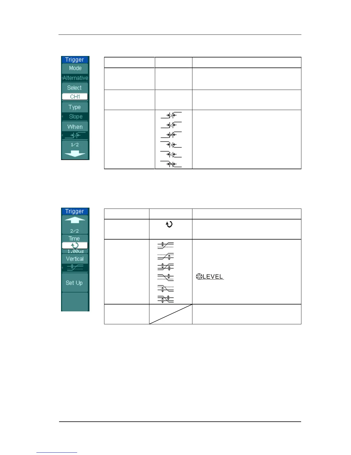 Figure 2- 55 Table 2- 31 The Alternative menu (Trigger Type: Slope, Page 1/2)