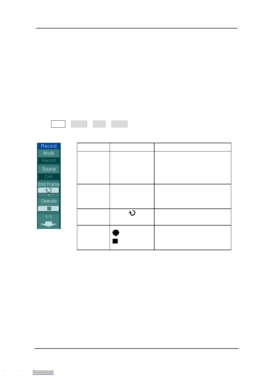 Figure 2- 101 Table 2- 64 The Record menu (Page 1/2)