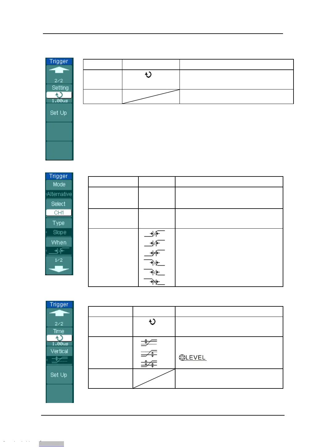Figure 2- 55 Table 2- 31 The Alternate menu (Trigger Type: Slope, Page 1/2)