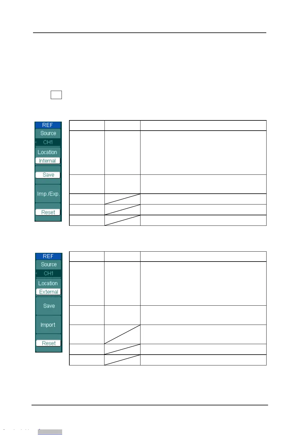 Figure 2- 18 Table 2- 8 REF Menu when using internal memory