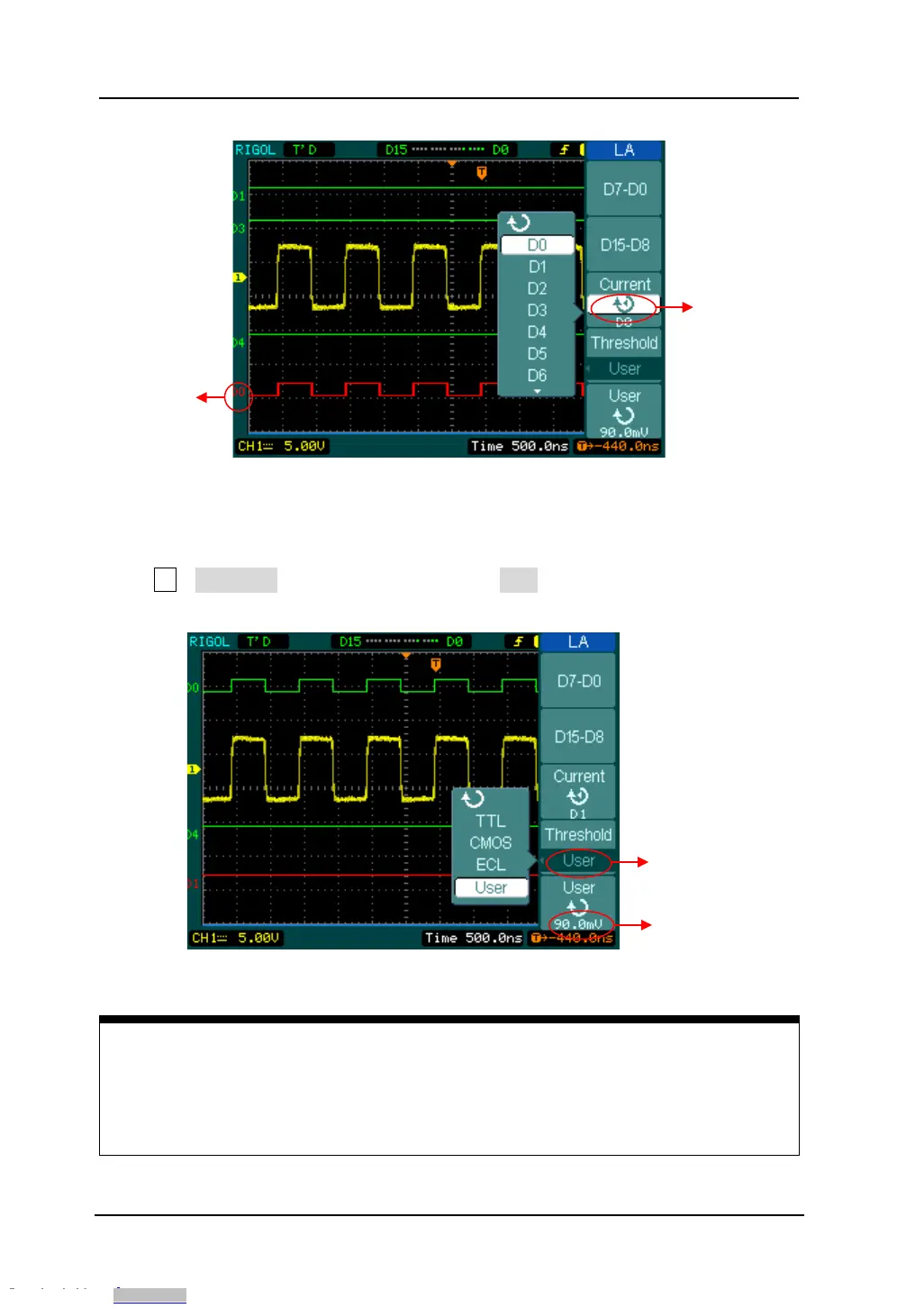 Press LA→Threshold, select logic standard or User to define your own threshold
