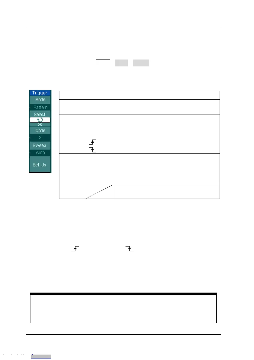 and ignore(X). Press Trigger MENU→Mode→Pattern to display the pattern trigger