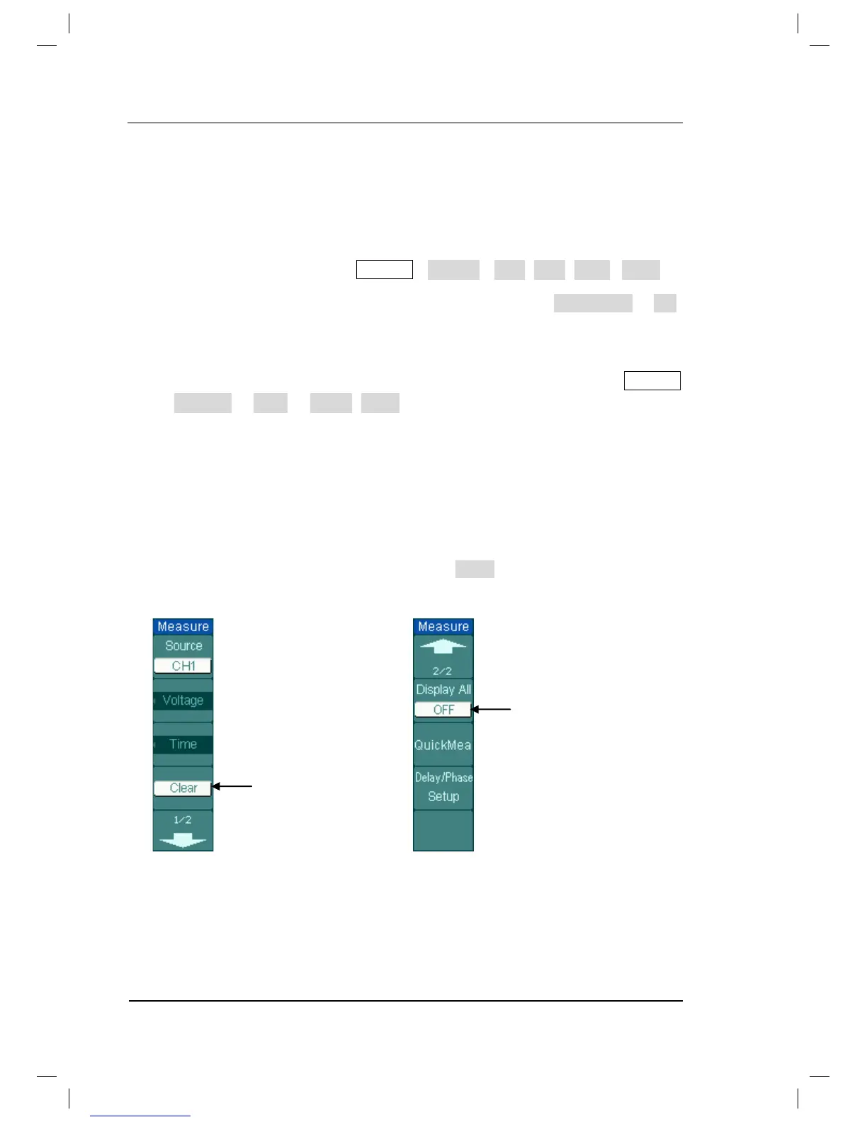voltage or time parameters pages by pressing soft button as follows: Measure
