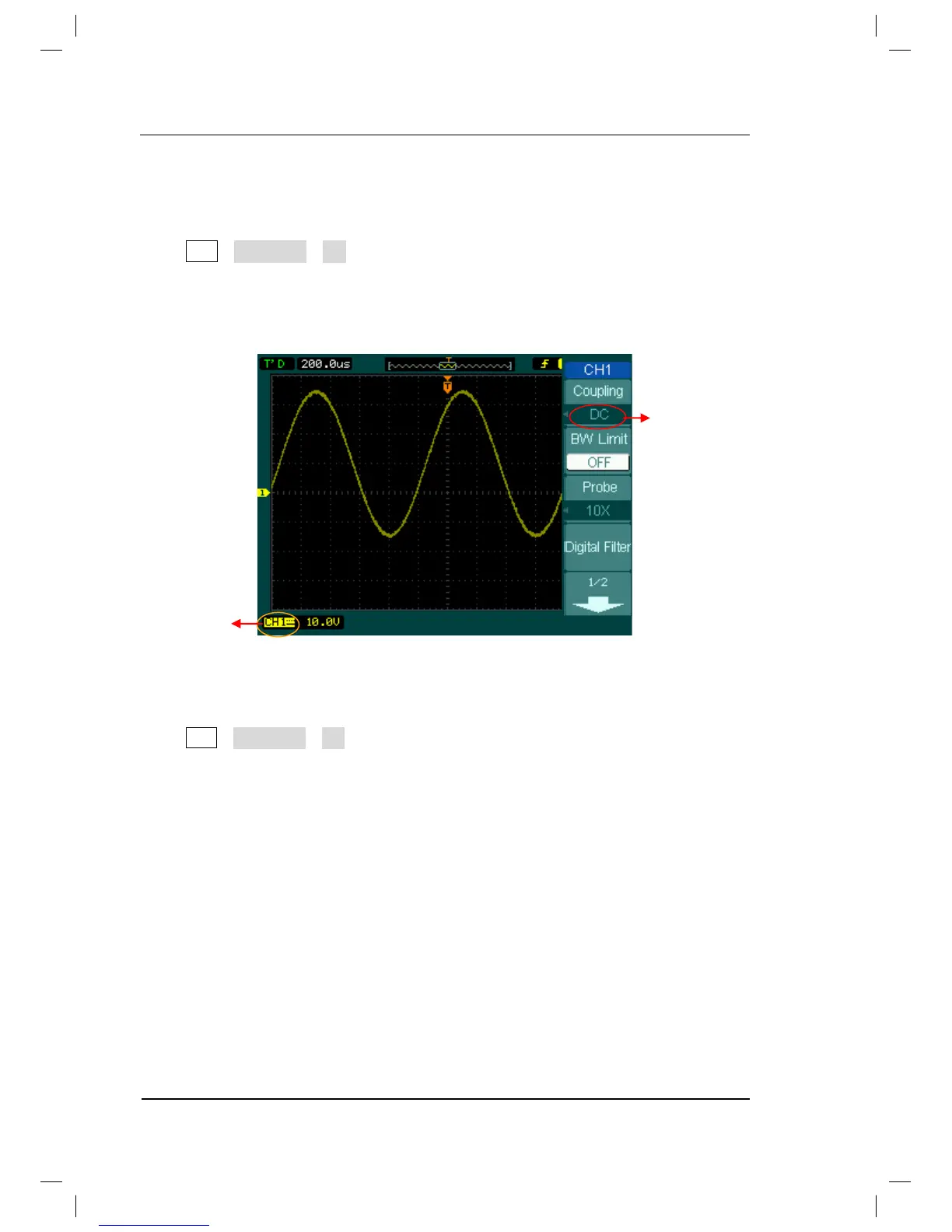 Press CH1ėCouplingėAC, to set “AC” coupling. It will pass AC component of the