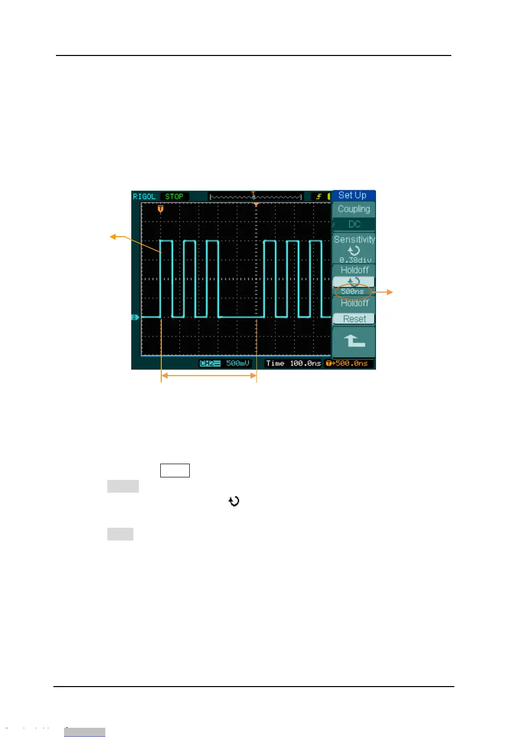 3. Turn the multi function knob ( ) to change Holdoff time until waveform is