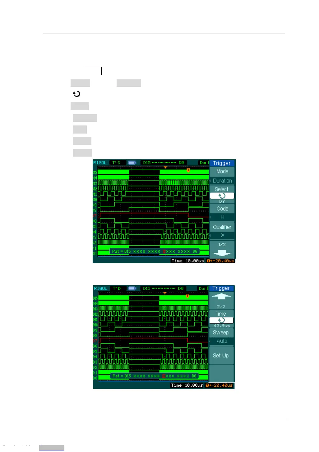 1. Press the MENU key in the triggering control area to see the trigger menu