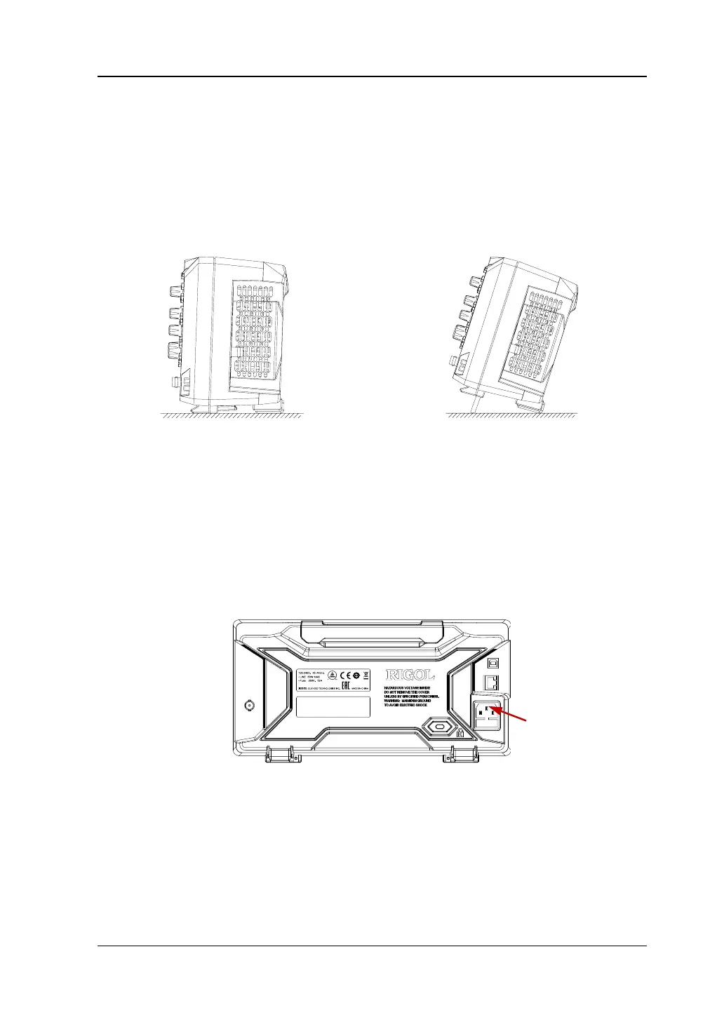 Adjust the supporting legs properly to use them as stands to tilt the oscilloscope