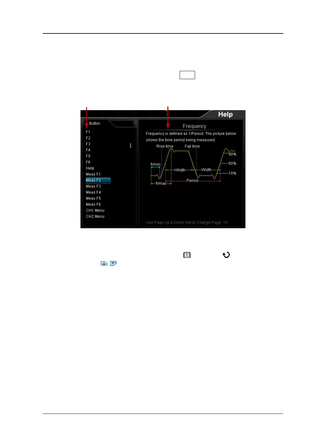 Page Up/Down key / ) on the front panel directly to get the corresponding help