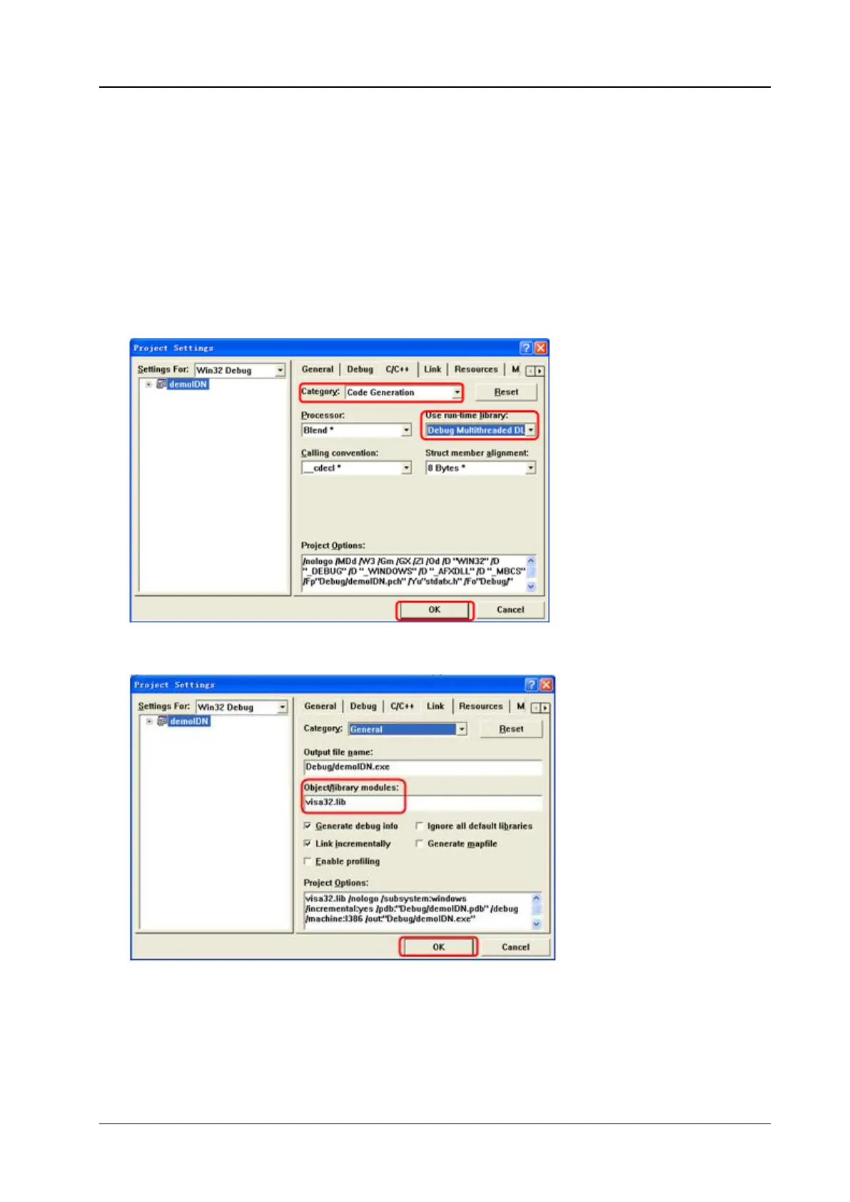 3. Open the Link tab in ProjectSettings and add visa32.lib to the Object/library modules