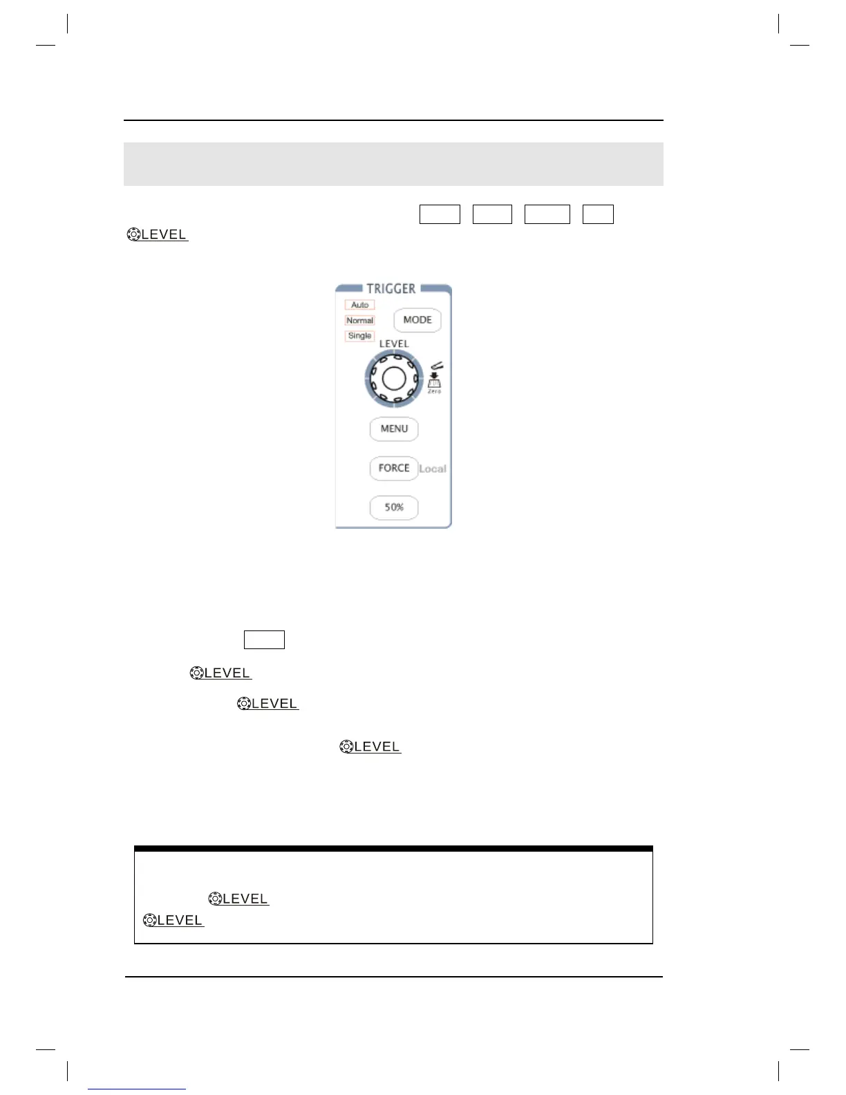 sign and a trigger level value displaying pane on the screen moving up and down.