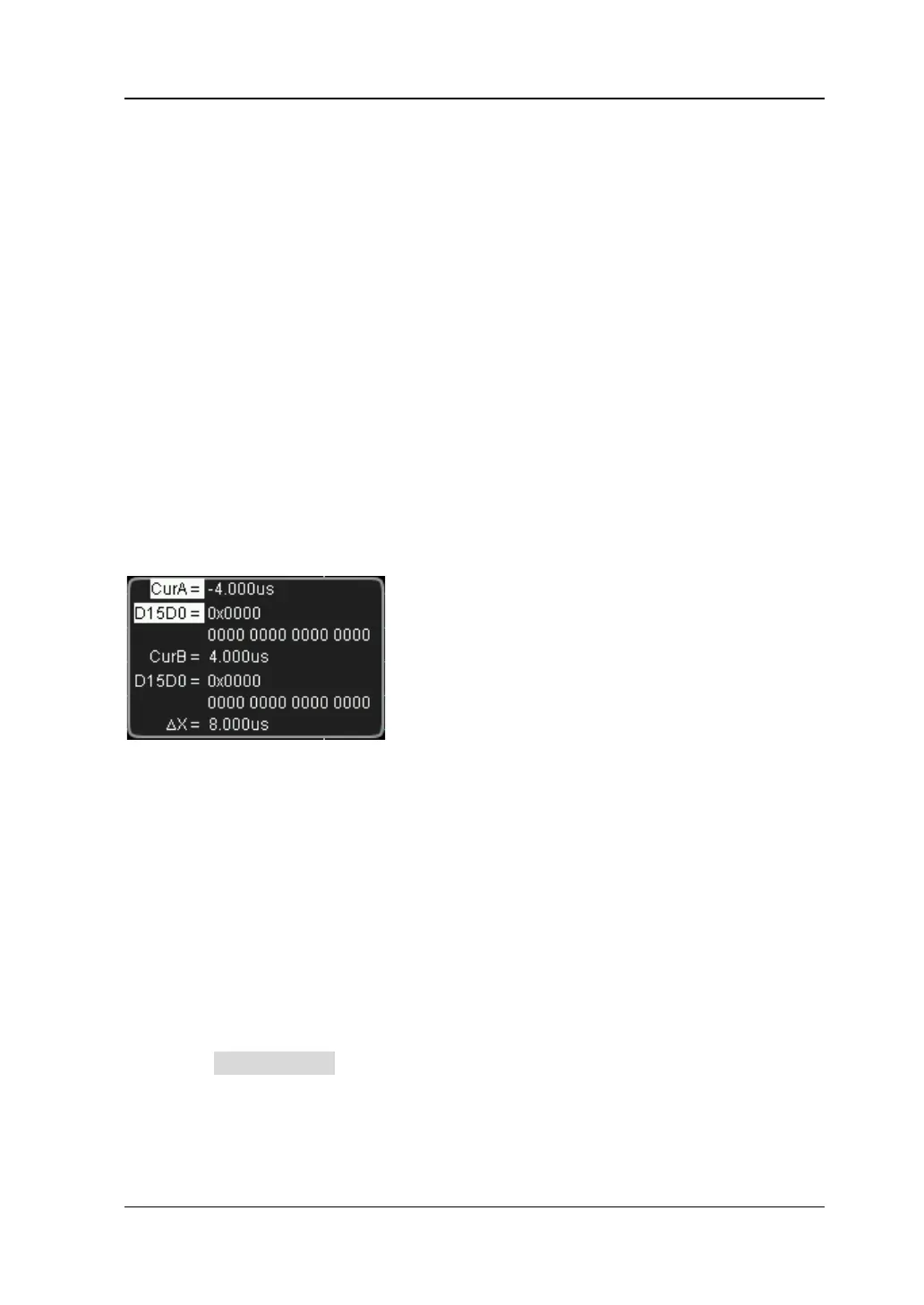 CurB: the X value at cursor B. X value takes the trigger position as reference.