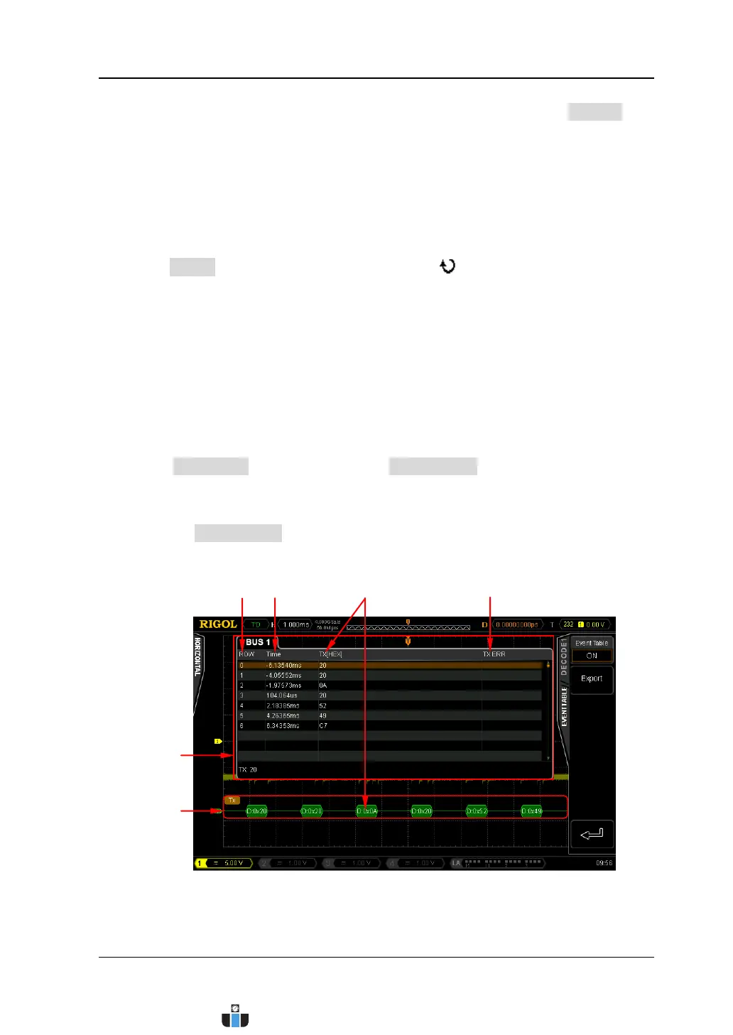 When BusStatus is set to “ON”, press Event Table to enter the event table