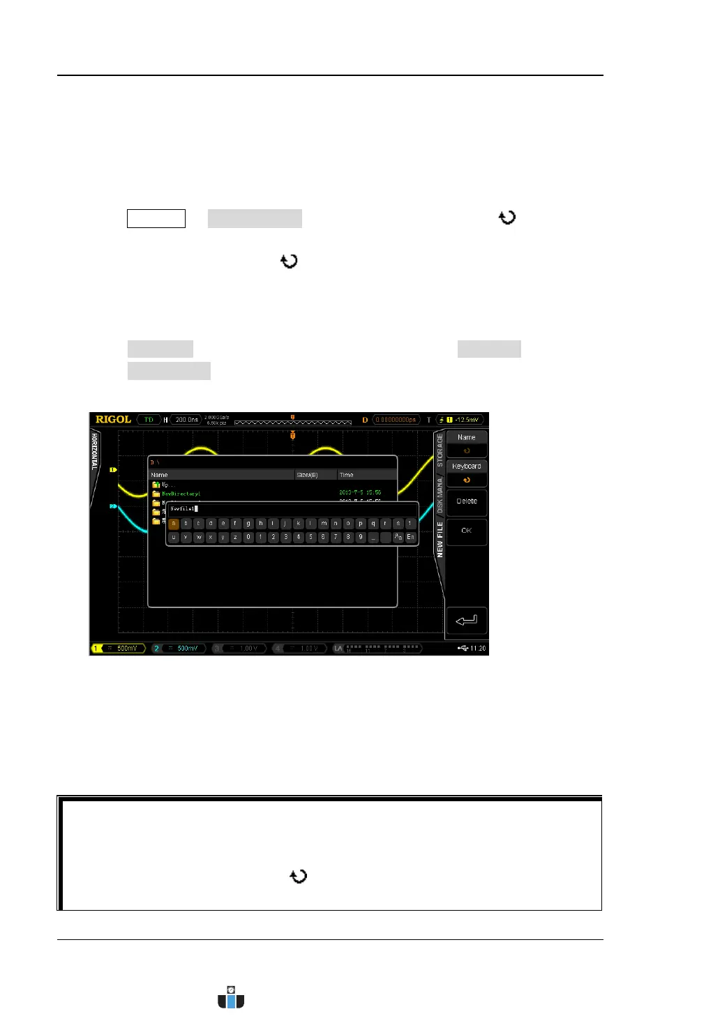 This oscilloscope supports Chinese/English input method. The filename or folder