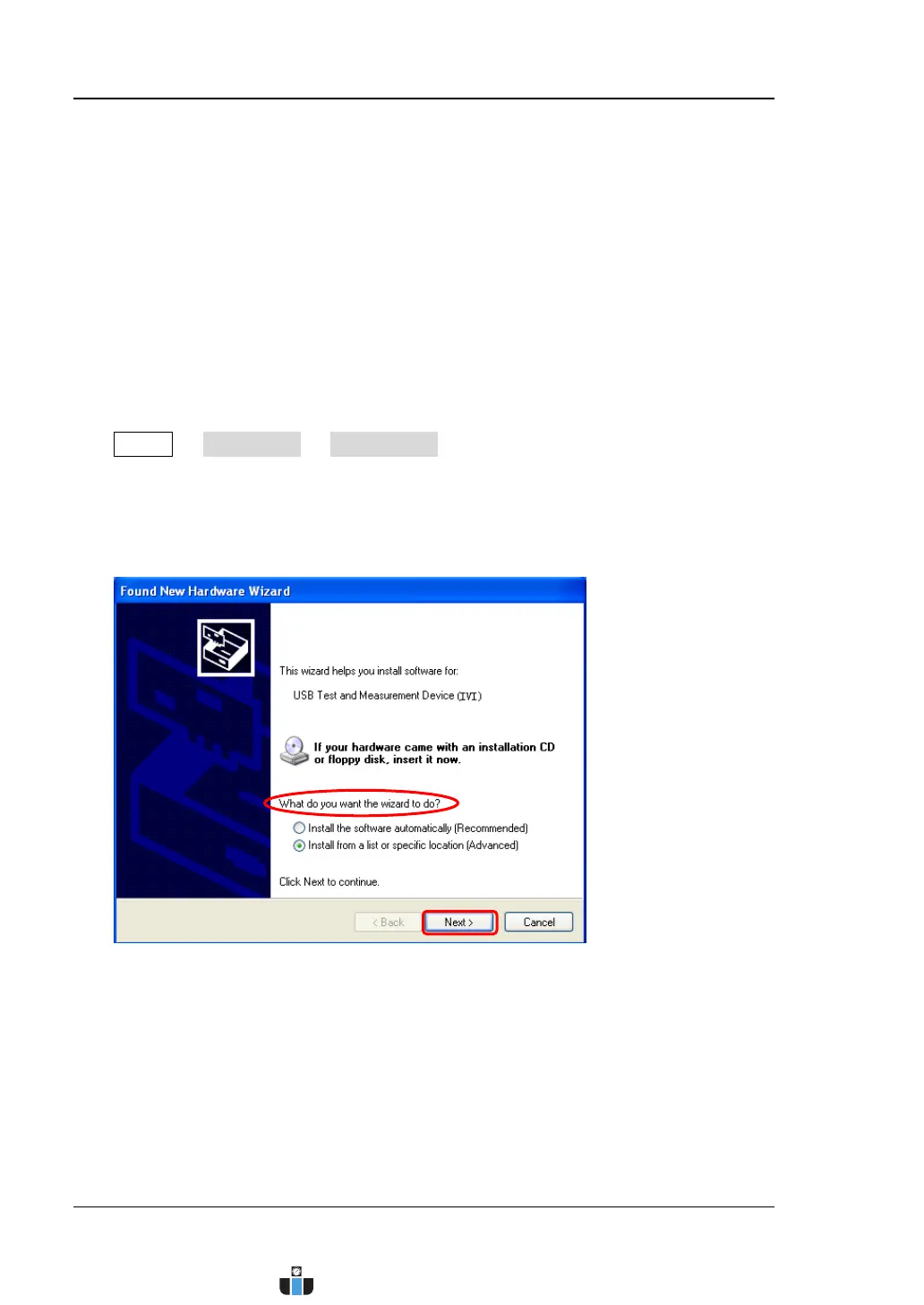 PC. Please install the “USB Test and Measurement Device (IVI)” driver following