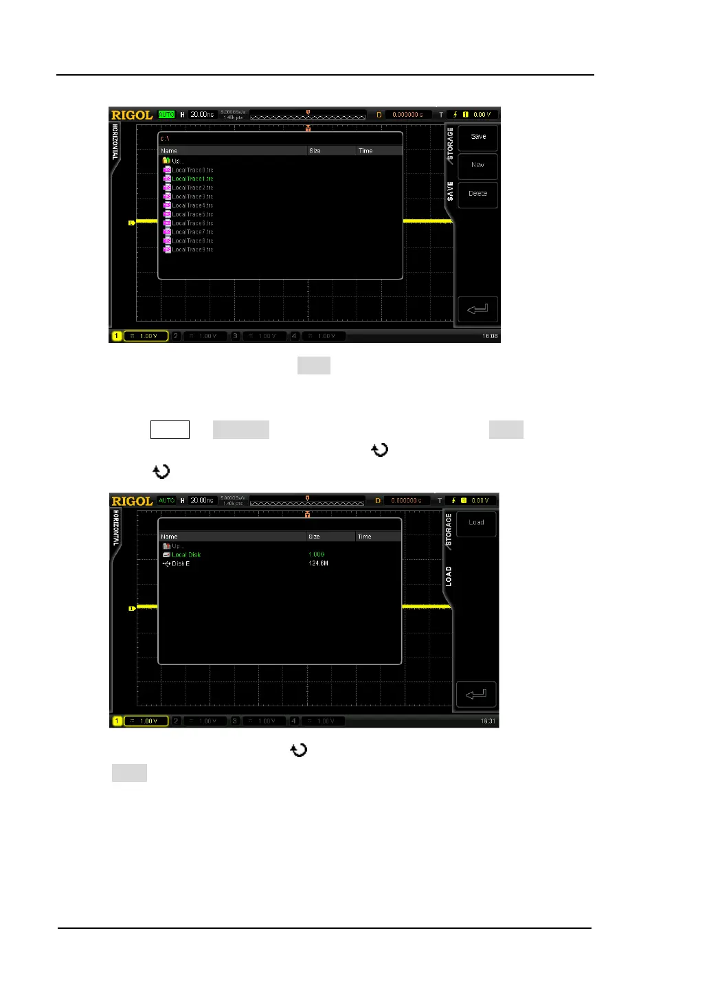 1) Press SAVE Storage to select “Traces” and then press Load to turn on