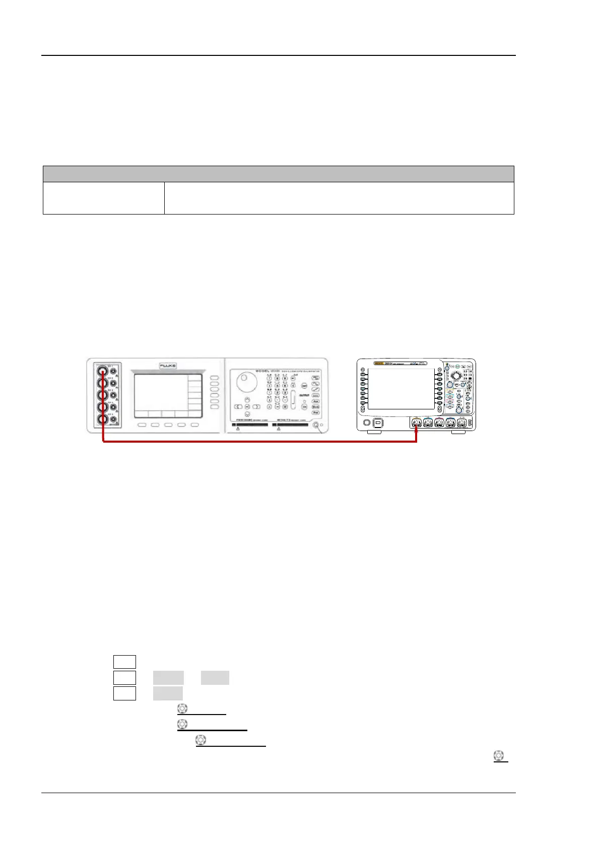 1. Connect the active signal terminal of Fluke 9500B to CH1 of the oscilloscope, as shown in the