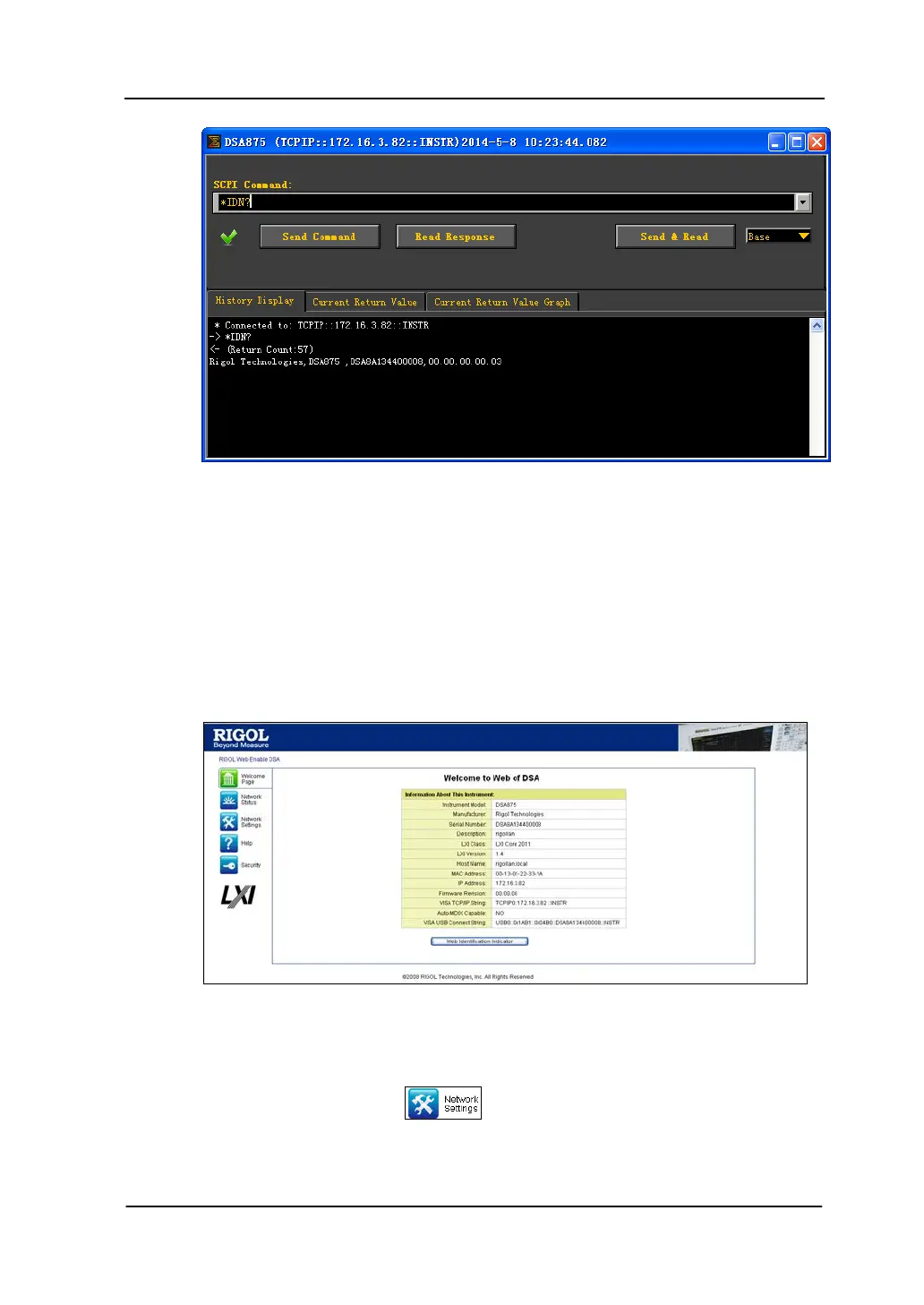 The analyzer conforms to LXI Core 2011 Device standards. You can load