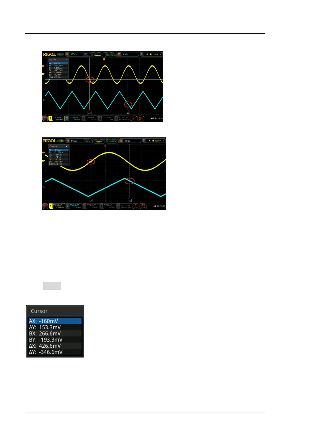 "Timebase Mode"). In this mode, two pairs of cursors will appear. You can adjust