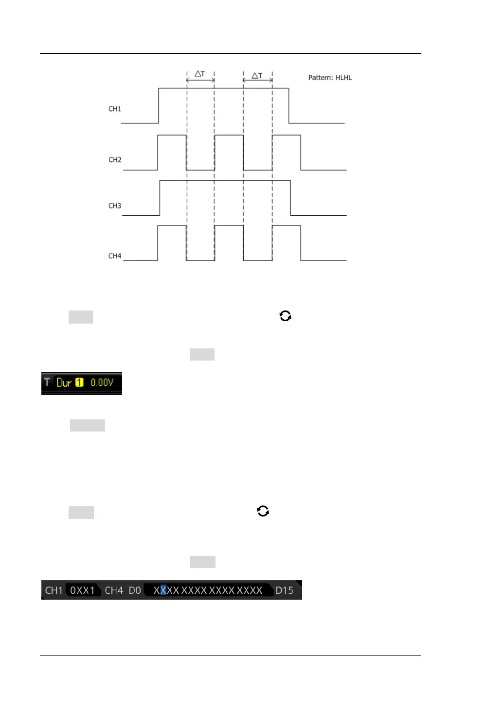 ⚫ H: sets the pattern of the channel selected to "H", i.g. the voltage level is higher