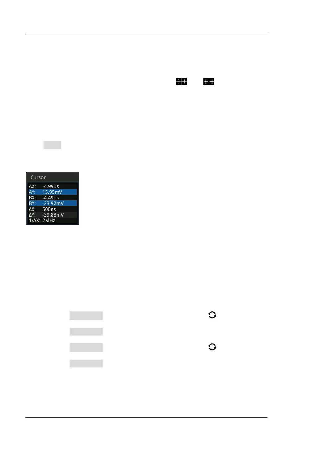 In this mode, you can adjust the two pairs of cursors (Cursor A and Cursor B) to