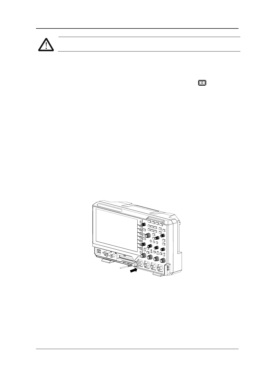 lower-left corner of the front panel to start the oscilloscope. During the start-up