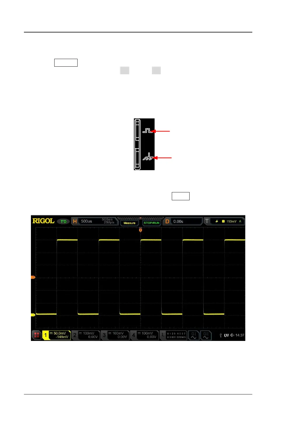 5. Observe the waveform on the display. In normal condition, the square waveform