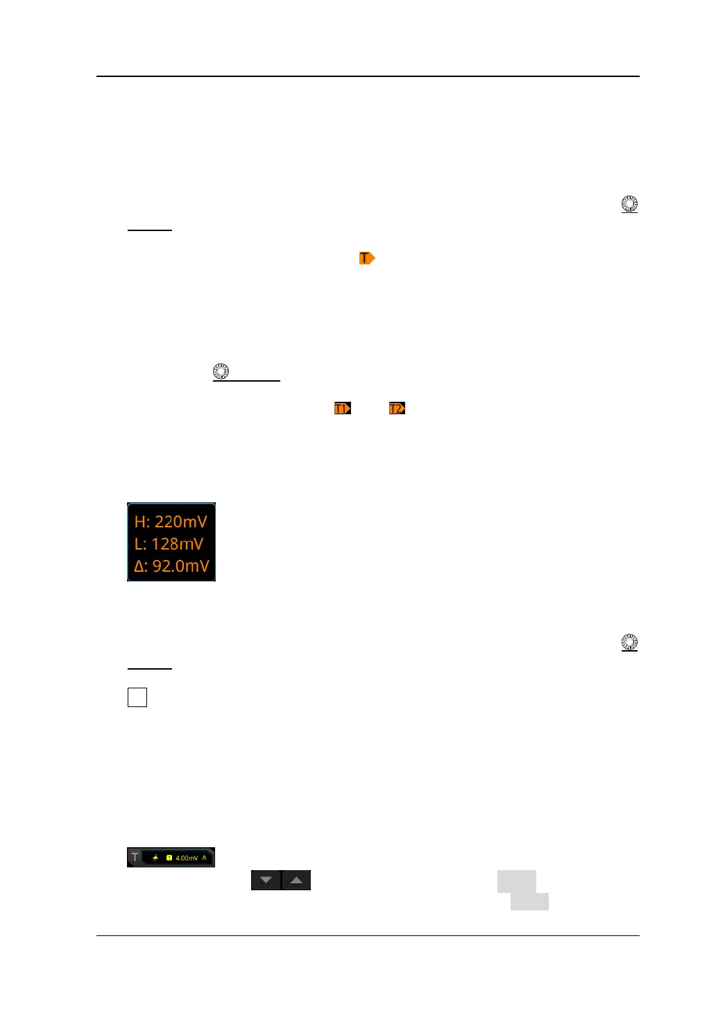 screen. Two trigger level labels ( and ) are displayed at the left side of the