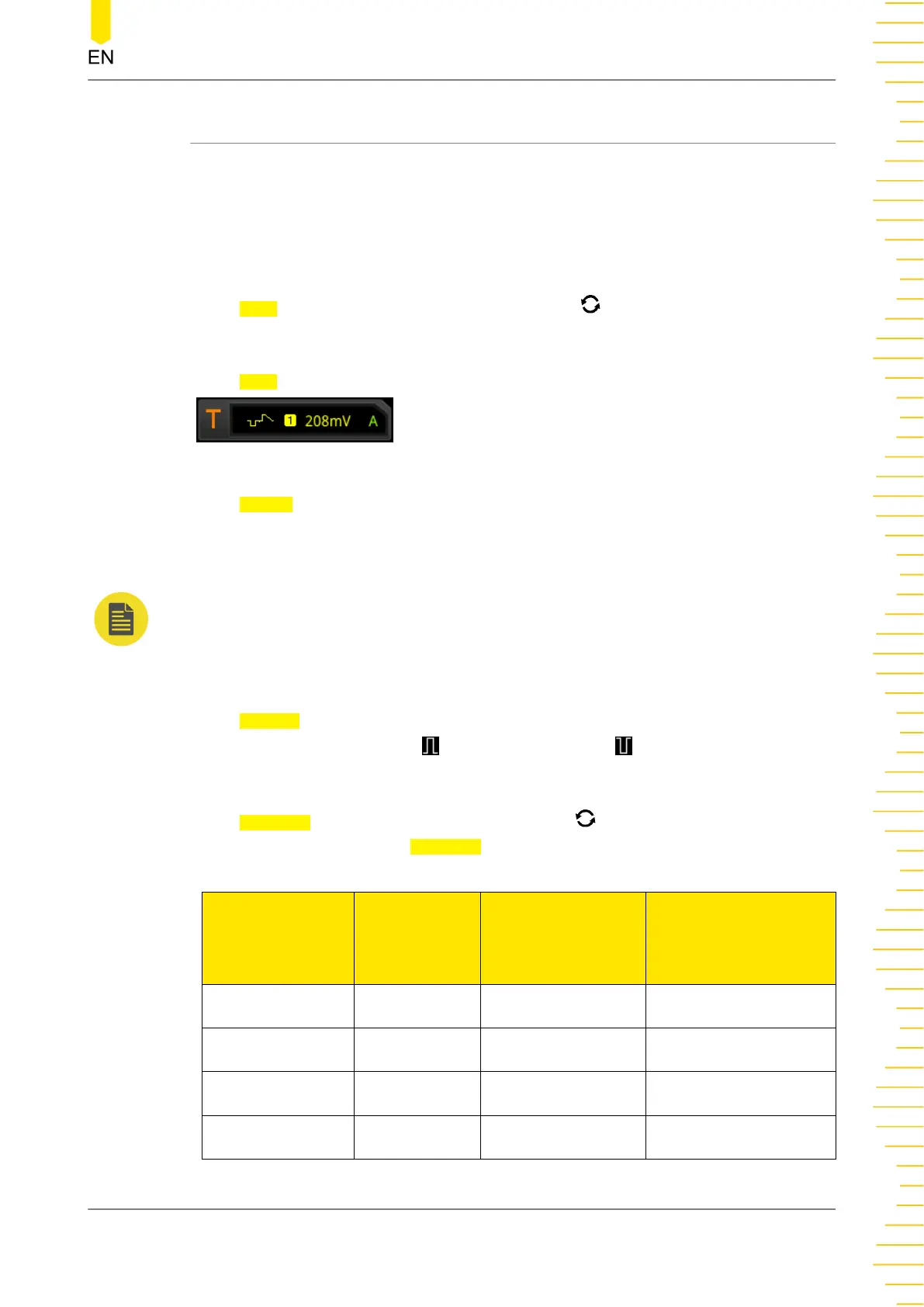 the knob to select the type. Then, the current trigger setting information is displayed