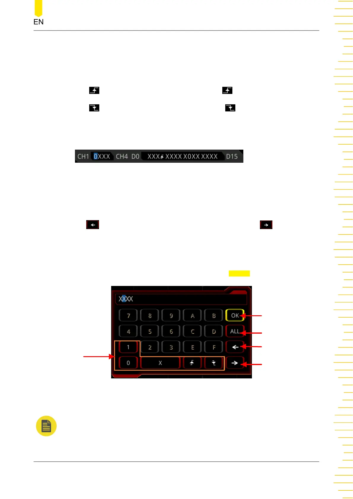 • Falling: sets the pattern to the falling edge (" ") of the channel selected.