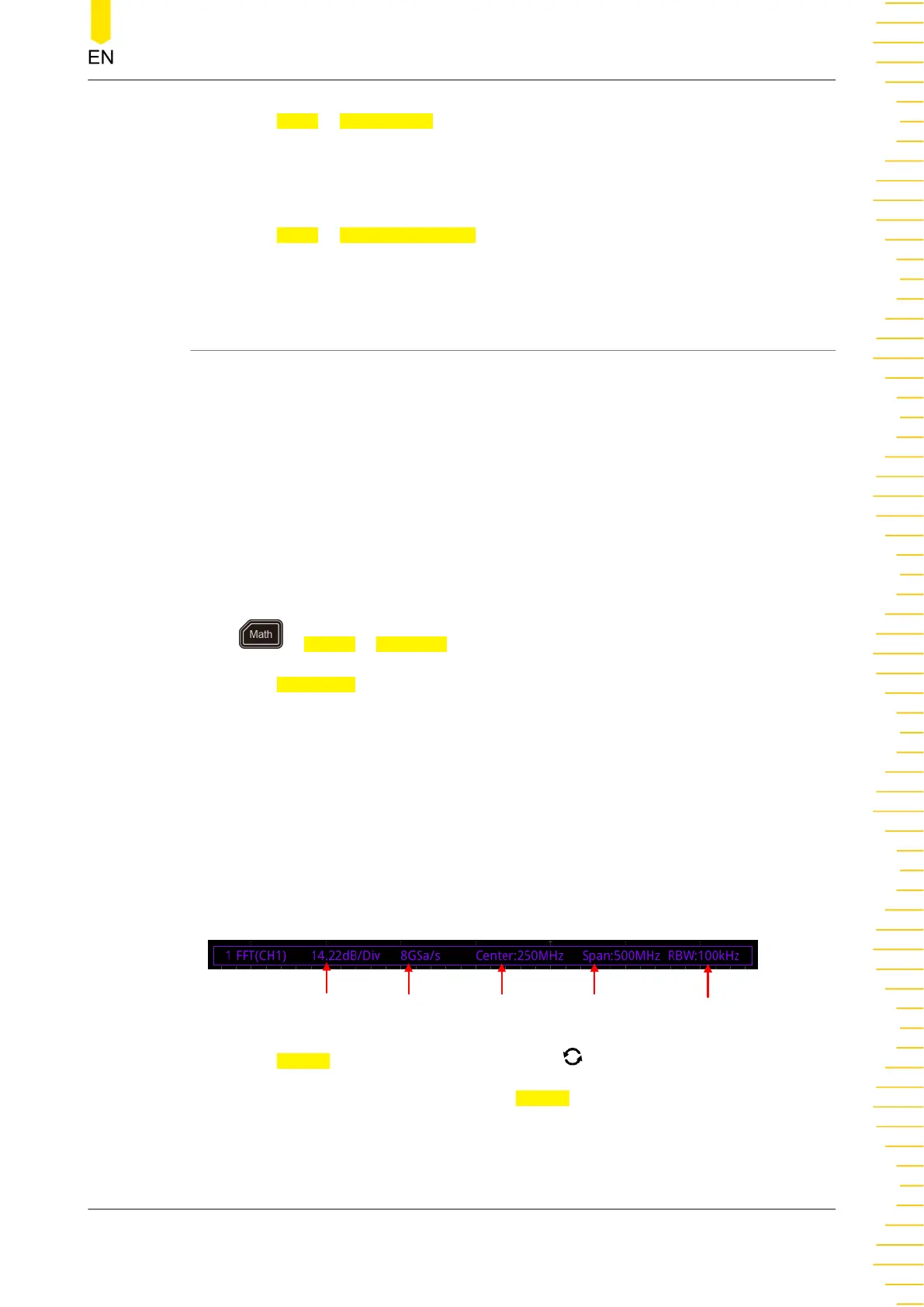 Press > Math1 > Operator to "FFT":