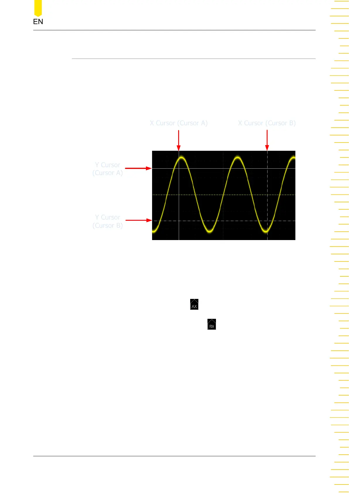 and Cursor B is a vertical dotted line ( is displayed at the bottom of the