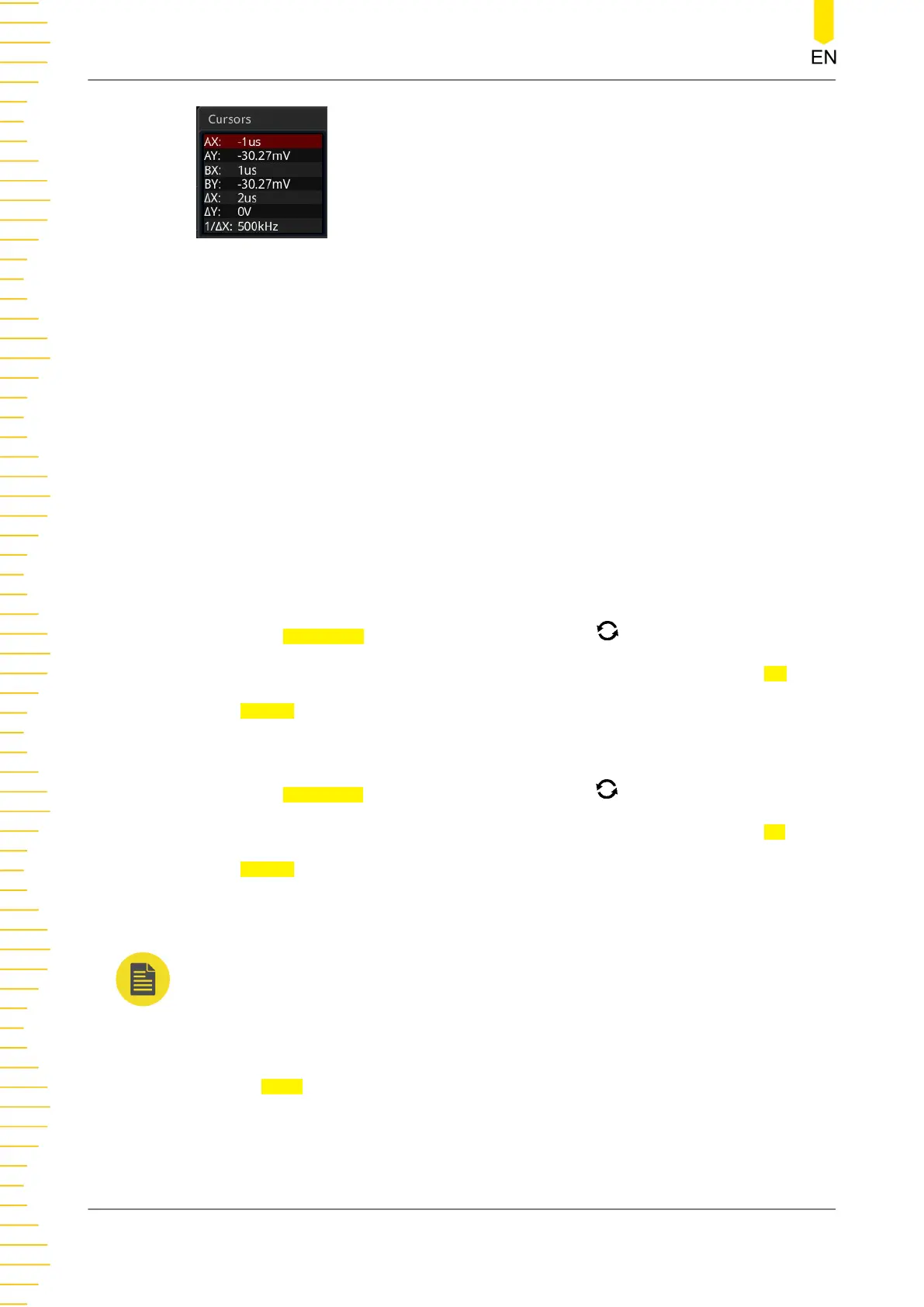 • ΔY: indicates the vertical spacing between Cursor A and Cursor B.
